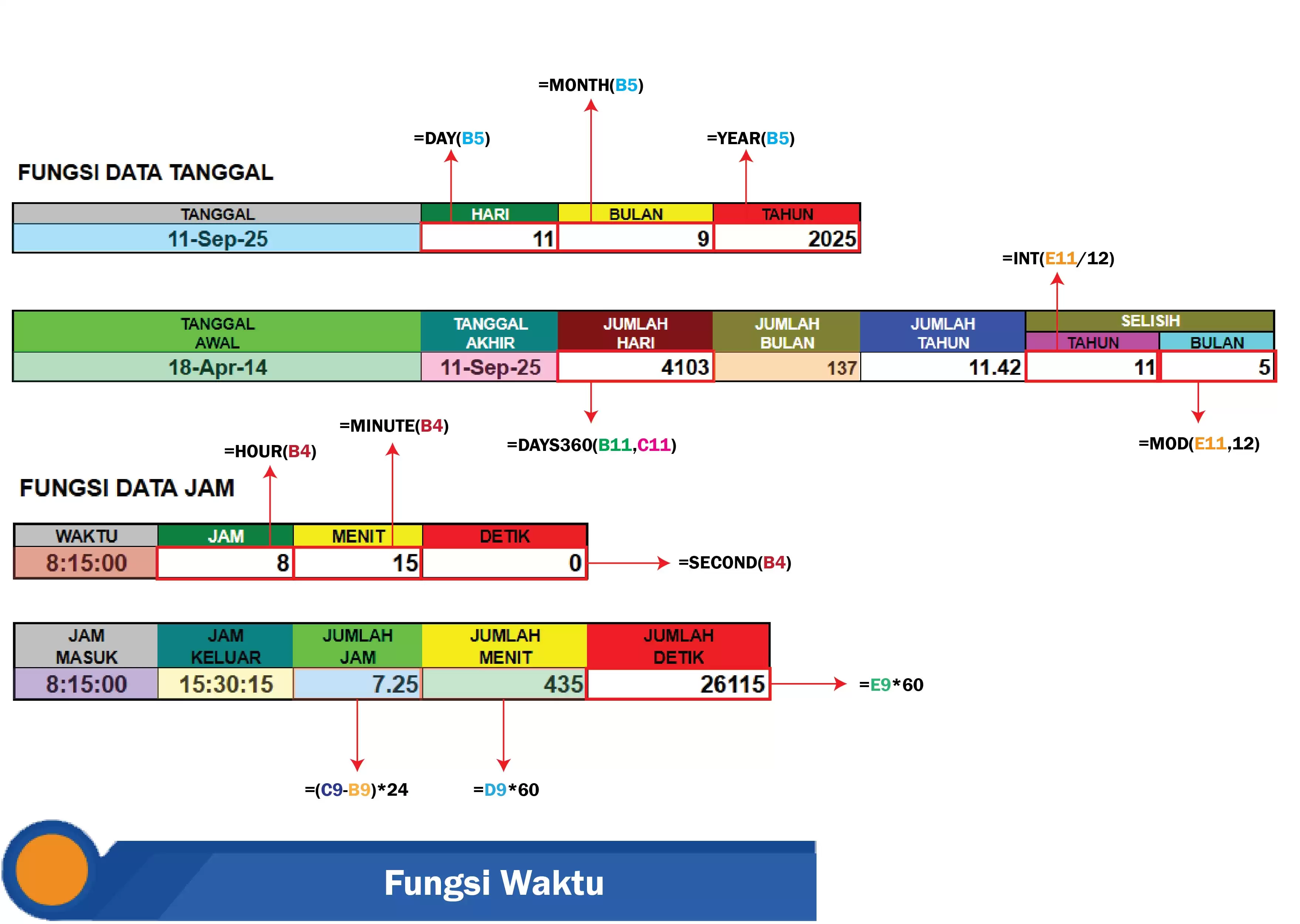 - Fungsi Aritmatika (SUM, AVERAGE, MAX, MIN, COUNT, COUNTA, SUMIF, SUMIFS, COUNTIF, COUNTIFS, MAXIF, MAXIFS, AVERAGEIF, AVERAGEIFS)